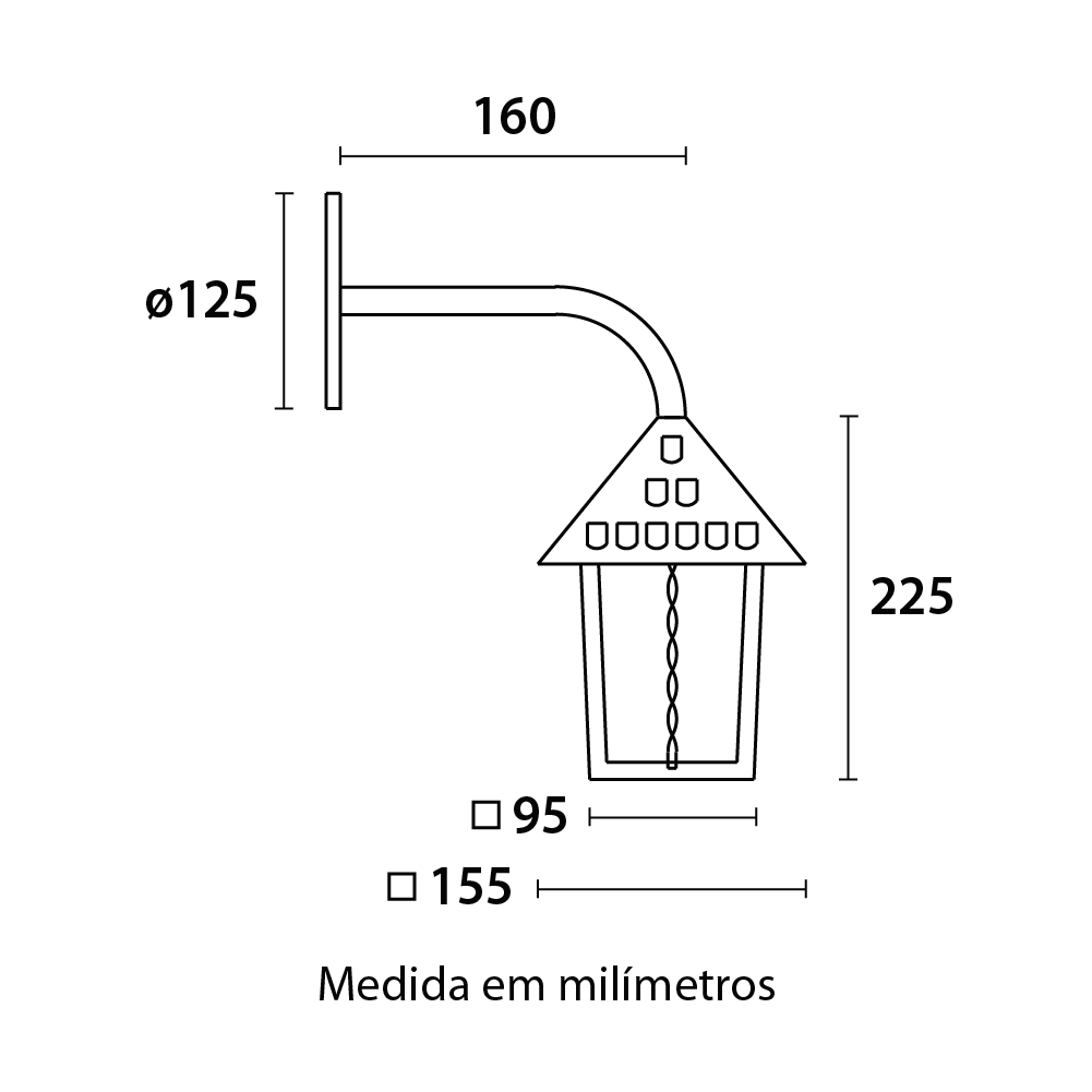 Arandela colonial quadrada em Polipropileno com Anti-UV e pintura a pó.